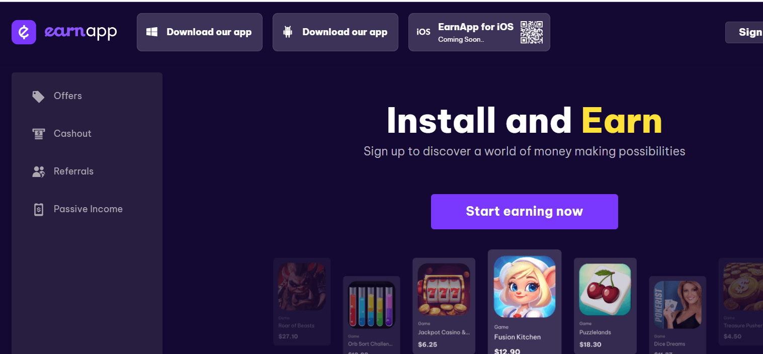 - Chọn một nhiệm vụ: Truy cập trang “Earn” trên EarnApp để xem danh sách các nhiệm vụ như chơi game, dùng thử ứng dụng, hoặc hoàn thành khảo sát từ các công ty đối tác.